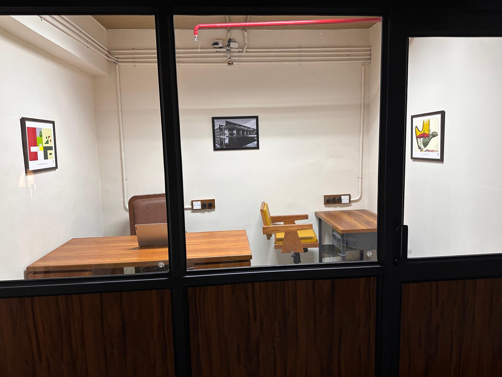 A slightly larger meeting space accommodating up to five individuals, suited for brainstorming sessions or mid-sized team collaborations.